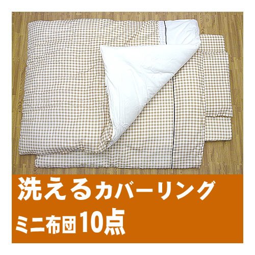 洗える ベビー ミニ布団10点『チェックブラウン』