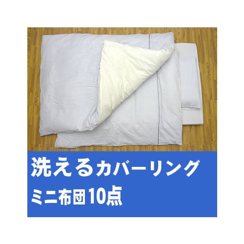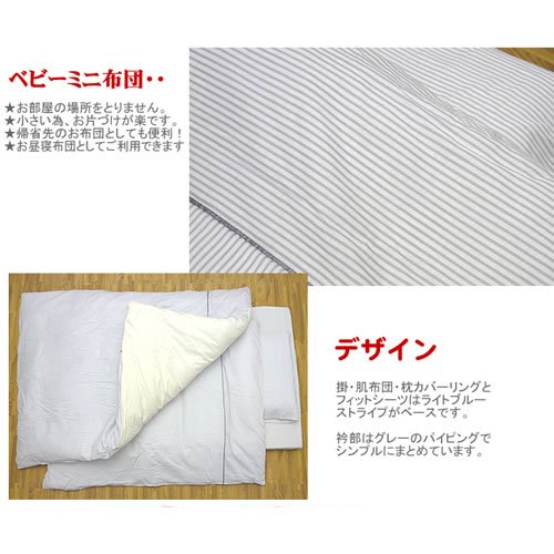 洗える ベビー ミニ布団10点『ストライプブルー』