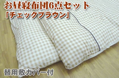 洗えるお昼寝布団6点 チェックブラウン