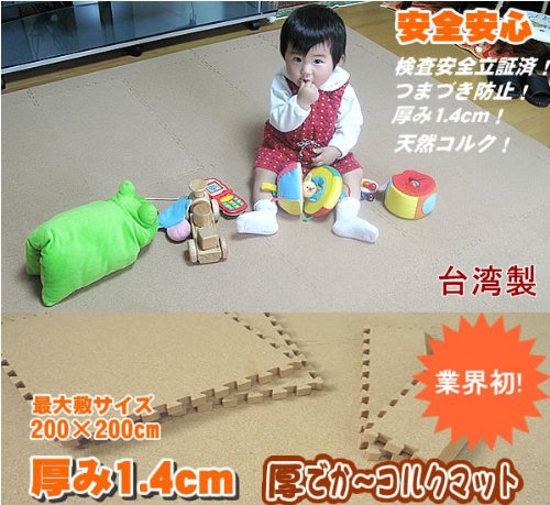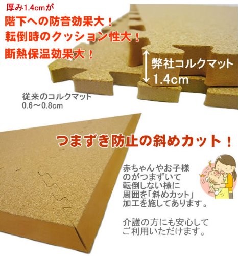 厚み1.4cm コルクマット 『厚でか~コルク』 CO-1 30cm角 最大200×200cm 防音対策 つまづき防止パーツ付