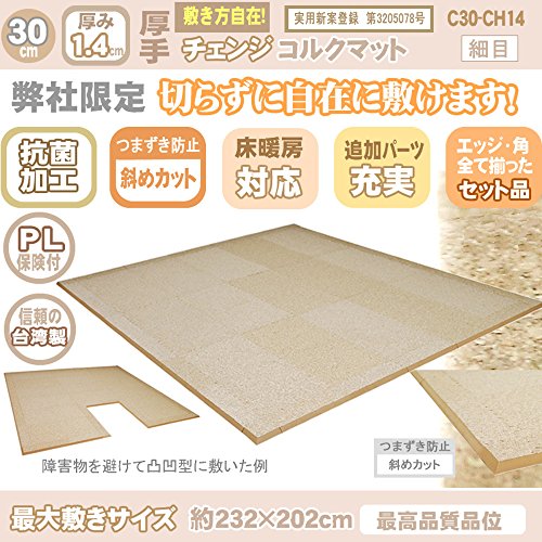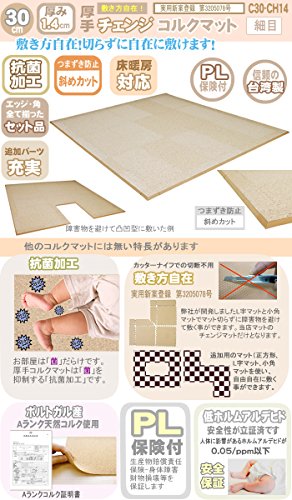 厚み1.4cm 抗菌加工 コルクマット 30cm角 42枚 厚手チェンジ C30-CH14 細目 約3畳 フロアーマット 防音 赤ちゃん ペット ジョイントマット