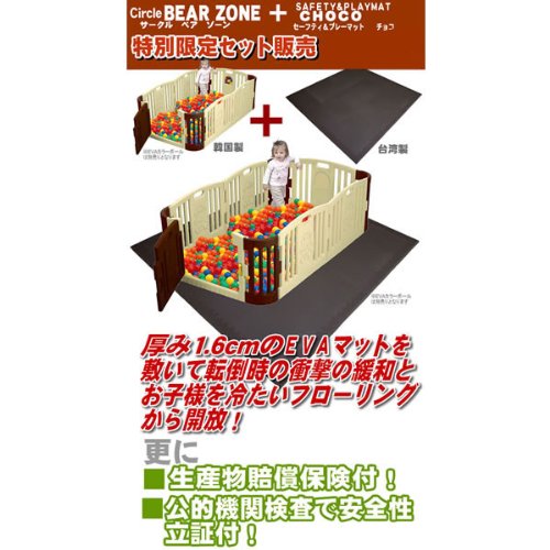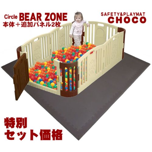 ベビーサークル BEAR ZONE【ベージュブラウン】+セーフティ&プレイマット【チョコ】特別セット販売