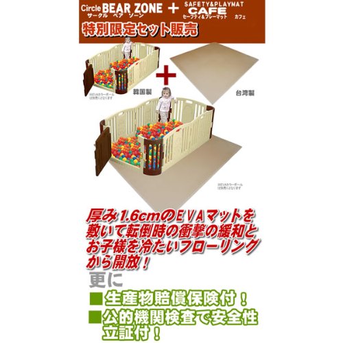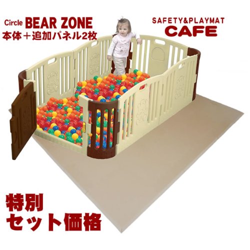 ベビーサークル BEAR ZONE【ベージュブラウン】+セーフティ&プレイマット【カフェ】特別セット販売