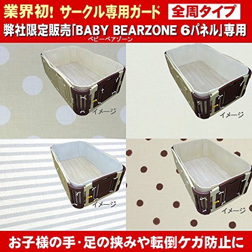 カラー:ドットチョコ( ※ベージュ地の濃茶水玉) ドットカフェ(ベージュ地の白大水玉) ブルースタイプ(水色の横ストライプ) ナチュレ(無地 ベージュ地) オリジナルサークル 『BABY BEAR ZONE』( ベビーベアゾーン) 【6枚パネル用】 専用サークルセーフティ ガード です。 注意: ・ 他のサークルではご使用できません。 上記サークルでも6枚パネル用です。 ・サークル本体は別売りです。 厚み:約1.8cm サイズ:長さ約552cm 高さ約60cm 側生地:綿100% 中身:ウレタン 原産国:中国 企画販売:アジル