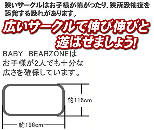 広い、高い、ビッグサイズのベビーサークルです。お子様2人でも十分な広さを確保しています。パネルの厚みは約3.7cm。重量感がありズレにくく、安全性・使いやすさが充実しています。高さは60cm。お子様が簡単に乗り越えできない高さです。また、パネルのすきまは狭く(約3.5cm)お子様の手や足が挟まれにくくなっています。(さらに広い「8枚パネルセット」も好評発売中です!「ベアゾーン 8枚パネル」で検索ください。ペットサークルとしてのご使用の場合、大型犬サイズも大丈夫な広さです。)
