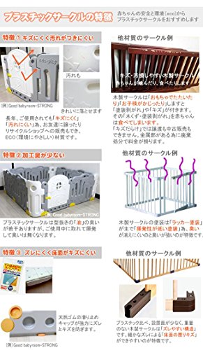 2)Good Babyroomは別売りの「パネル固定カバー」でパネル間の固定をしていただくかその他のサークルは100円ショップ等で販売しておりますセ-フティグッツの「固定ストッパー等」でパネルとパネルを固定してください。