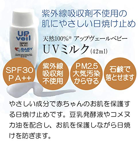 天然由来成分100% アップヴェールベビー UVミルク SPF30 PA++ 42g ベビー用 スキンケア 安心 安全 低刺激 無香料 無着色