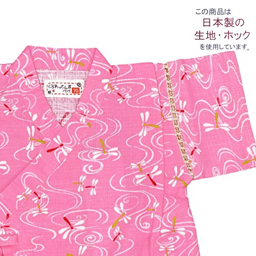 アスナロ(甚平) 甚平 ベビー 女の子 子供 日本製生地 とんぼ柄 綿100 ロンパース70 ピンク