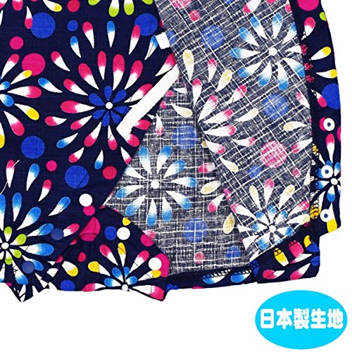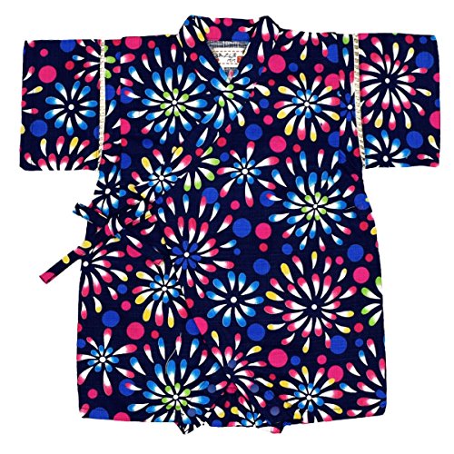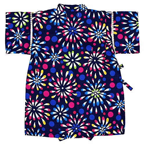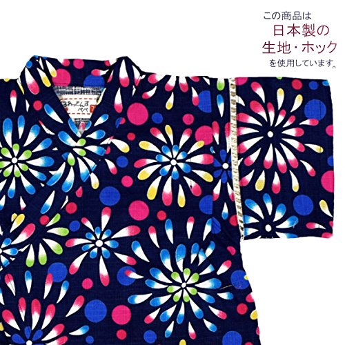 アスナロ(甚平) 甚平 ベビー 女の子 子供 日本製生地 花火柄 綿100% ロンパース70 ネイビー