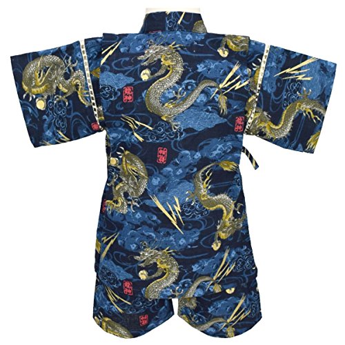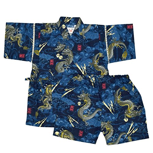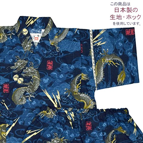 アスナロ(甚平) 甚平 ベビー 男の子 竜 和柄 綿100% 上下 ウェストゴム 部屋着80 ネイビー