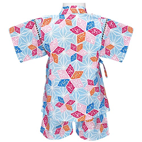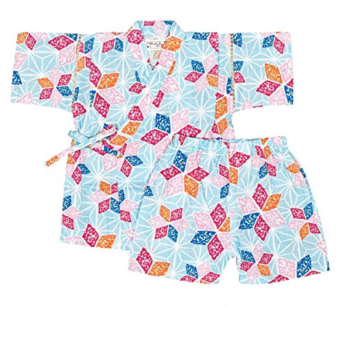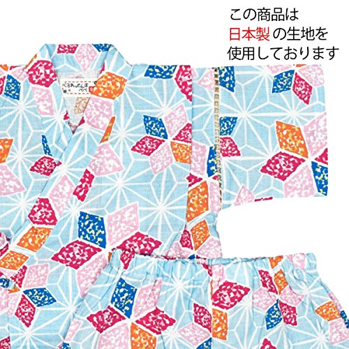 アスナロ(甚平) 甚平 ベビー 女の子 ちぎり絵風 和柄 綿100% 上下 ウェストゴム80 サックス