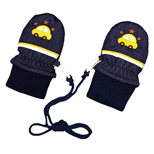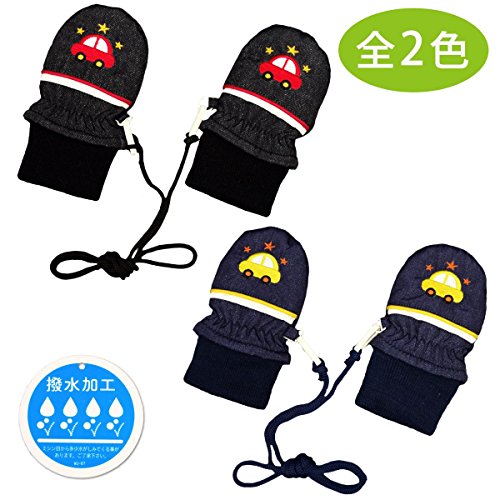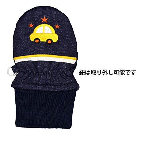 アスナロ(グローブ) スノーミトン ベビー ボーイズ 車柄 手袋 グローブ 防寒 紐付き1-2才 ネイビー-イエロー