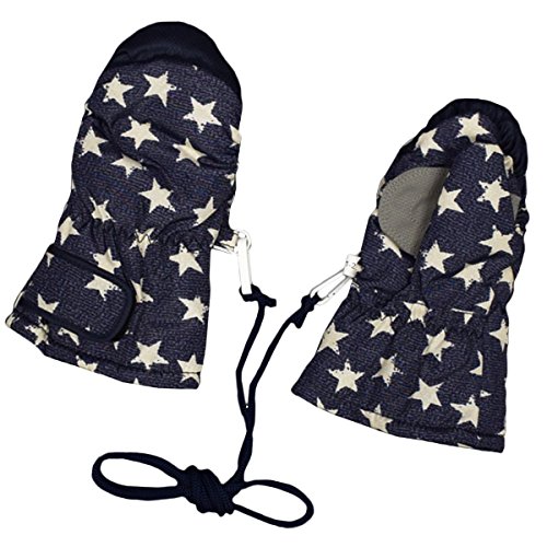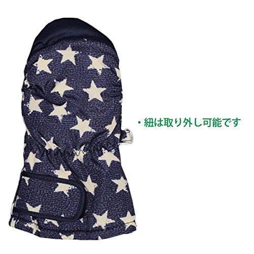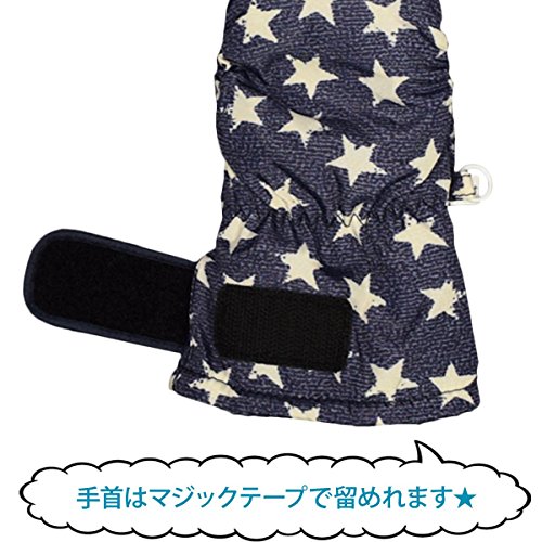 アスナロ(グローブ) スノーミトン キッズ 男の子 女の子 手袋 星柄 リボン柄3-4才 ネイビー
