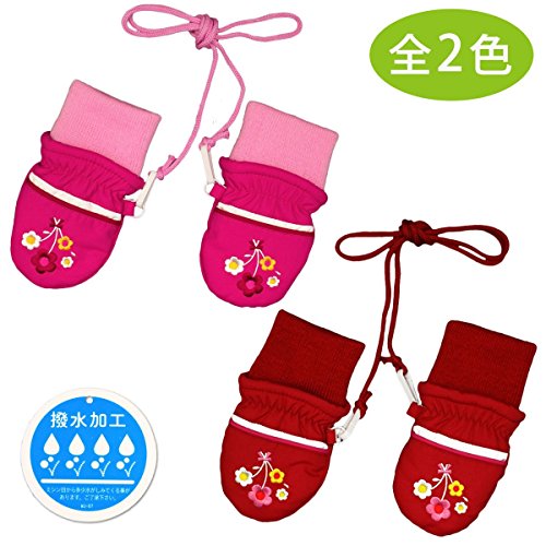 アスナロ(グローブ) スノーミトン ベビー 女の子 ガールズ 手袋 花柄 防寒 紐付き1-2才 ピンク