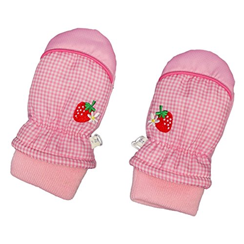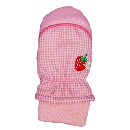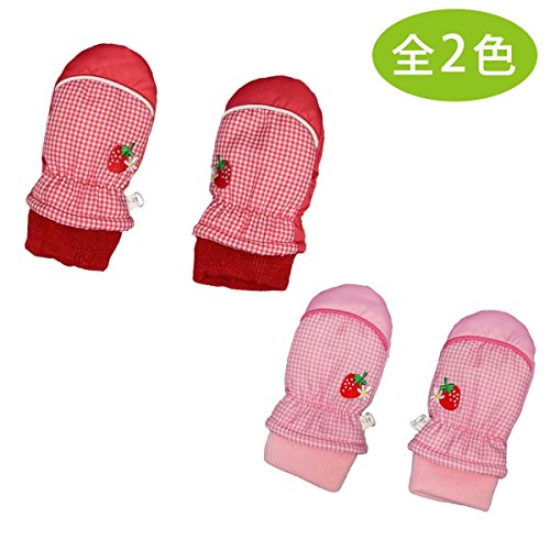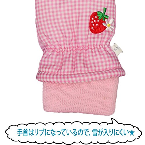 アスナロ(グローブ) スノーミトン 女の子 子供 手袋 フリース いちご柄 刺繍 防寒1-2才 ピンク