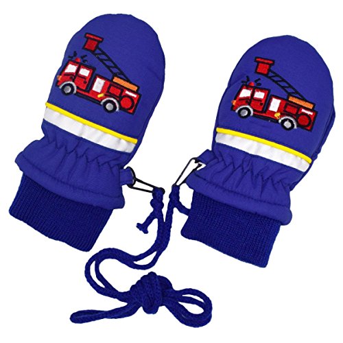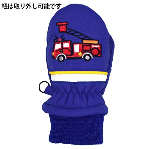 アスナロ(グローブ) スノーミトン ベビー 男の子 子供 くるま プリント 手袋 防寒 紐付1-2才 ブルー