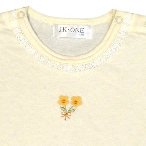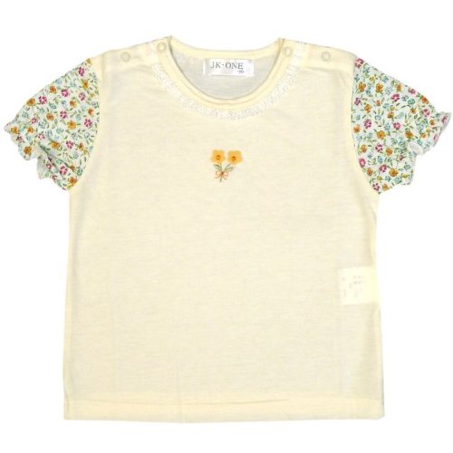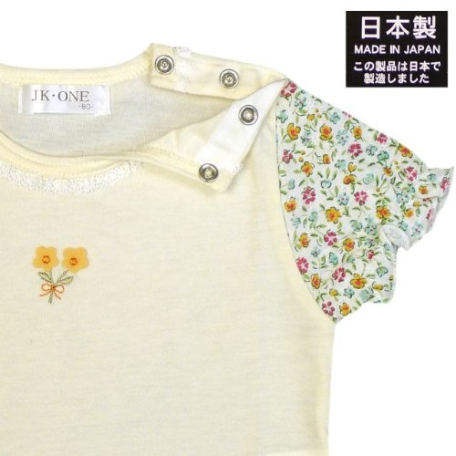 / 日本製スムース半袖Tシャツです。 / 襟周りはレース使い。 / 袖は花柄パフスリーブです。 / 両肩ボタンなので着脱しやすくなっています。 / プレゼントにも喜ばれそうです。 / 本体 : 綿100% / /