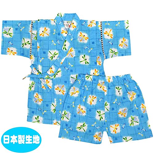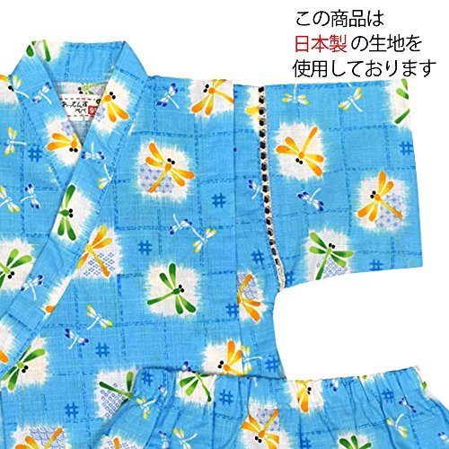 / 日本製生地使用サザンクロス地格子トンボ柄甚平です。 / 目の大きなかわいいとんぼ柄に子供らしさが出ていますね。 / 安心の日本製綿100%生地。 / お肌に優しい素材です。 / パンツはウエストゴム。紐なし。ゴム取換え穴あり。 / / *お揃いの商品あります / 甚平 100-130サイズ 商品型番:9702AS / 本体 : 綿100% / /
