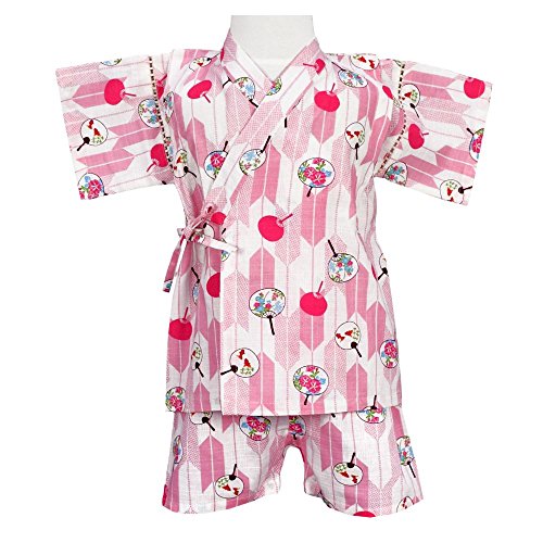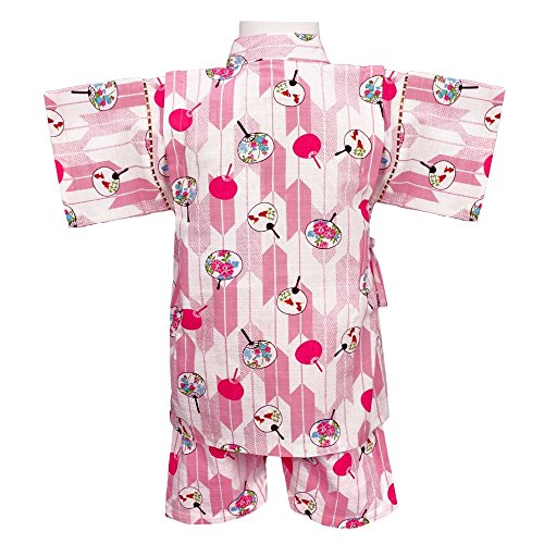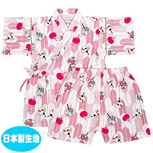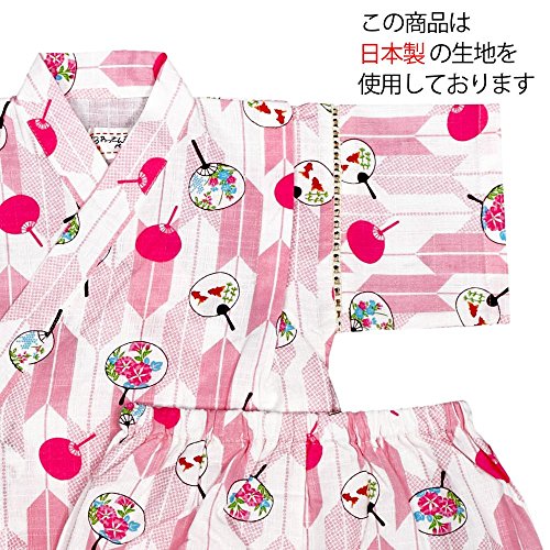 アスナロ(甚平) 甚平 ベビー 女の子 日本製生地 矢絣・うちわ柄 綿100% 国産生地90 ピンク