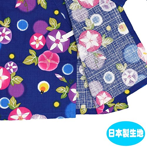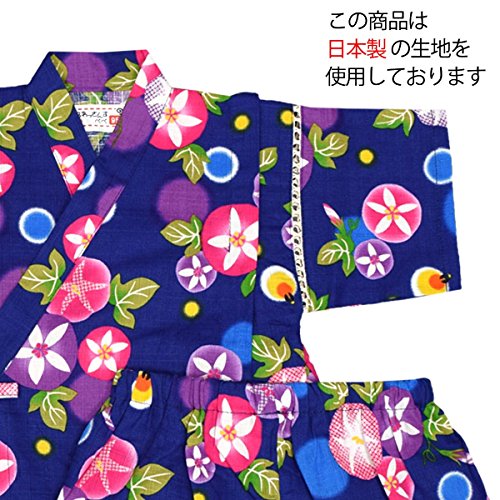 アスナロ(甚平) 甚平 ベビー 女の子 朝顔柄 和柄 綿100% 上下 ウェストゴム 部屋着80 ネイビー