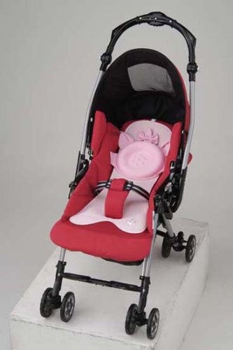 おしゃれキャットマリーのイラスト入りベビーカー用シート(クッション)。ベビーカーに取り付けるだけでムレを防ぎ、赤ちゃんが快適に過ごすことができる。頭をのせるキャラパッド(気道閉塞マモールパッド)が、やさしく頭部を支える。A型ベビーカーに対応。