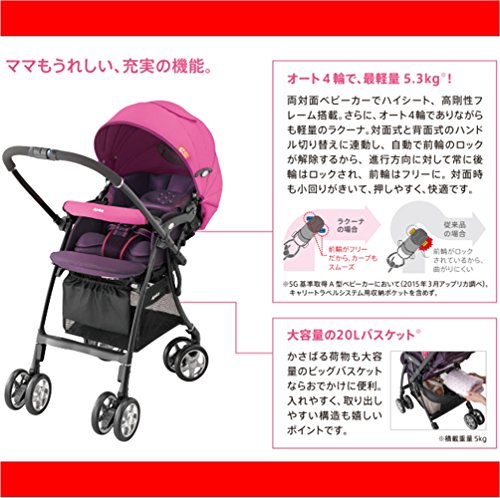 Aprica (アップリカ) ハイシートベビーカー Carry Travel System ラクーナ ブルーベリーコンフィチュールNV 【CTS対応品】(オート4輪機能 & メディカル成長マモール付) 92996