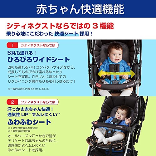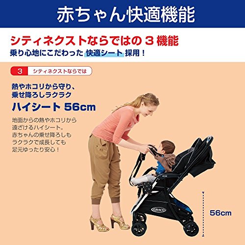★★おでかけサポート その3:赤ちゃん快適機能充実★★ ⇒グラグラする赤ちゃんの頭と首をサポートする【ヘッドサポート】装備。 ⇒シティエースのふわふわ感はそのままに、さらに通気性アップ(通気性性試験 当社従来比)。そしてムレにくく、赤ちゃん快適(湿気放散性試験)。 ⇒シート裏側には収納された【足カバー】あります。足の先までしっかりカバーして、防寒にも役立ちます。シート本体に縫い付けてあるので紛失の恐れもありません。 ⇒【ハイシート56cm】のシート座面。赤ちゃんの乗せ降ろし時のパパママの腰負担軽減にも役立ちますし、地面からの熱やホコリから遠ざけてあげることもできます。