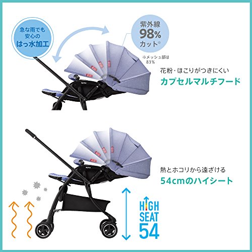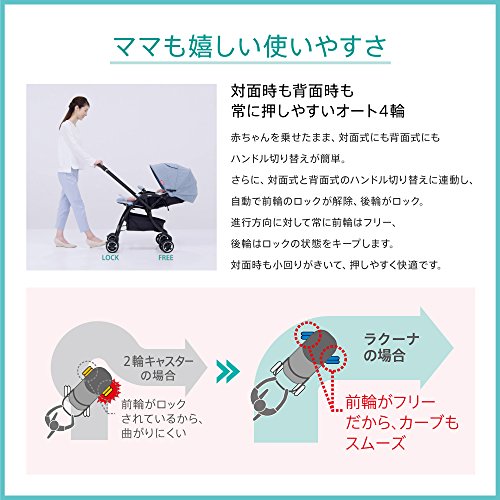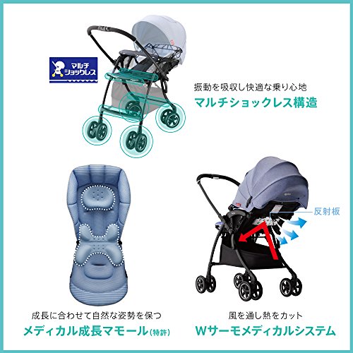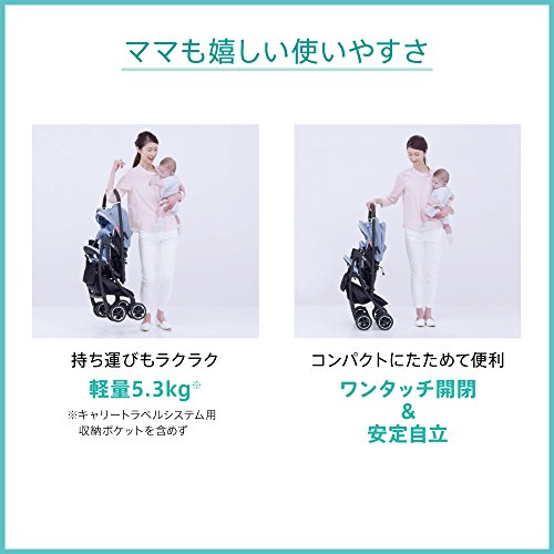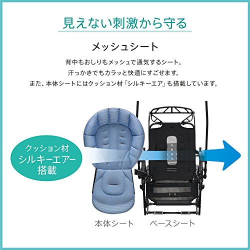 ●股関節がまだしっかりとしていない赤ちゃんにとって最も自然な姿勢は、手をあげ(W型)、股とひざを曲げた(M型)"WM"スタイル。自由に手足が動かせる環境は健やかな成長を育むためのベースとなるもの。大きく成長する生後3年のこの時期だからこそ、背骨の発達を妨げず、自然な動きを妨げずゆったりと心地いい、十分な広さを確保しました。●背中もおしりもメッシュで通気するシート。汗っかきでもカラッと快適にすごせます。また、本体シートにはクッション材「シルキーエアー」も搭載しています。●赤ちゃんを乗せたまま、対面式にも背面式にもハンドル切り替えが簡単。さらに、対面式と背面式のハンドル切り替えに連動し、自動で前輪のロックが解除、後輪がロック。進行方向に対して常に前輪はフリー、後輪はロックの状態をキープします。対面時も小回りがきいて、押しやすく快適です。●サイズ:開-W495×D905~1085×H965~1003(mm) 、閉-W495×D380×H1060(mm) ●重量:5.3kg●リクライニング角度:134~165度●対象年齢:1カ月~36カ月