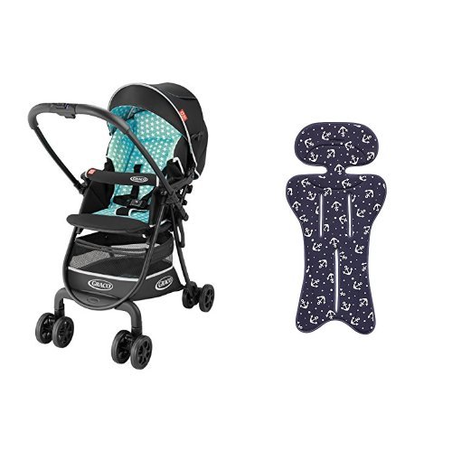 【セット買い】 グレコ ベビーカー シティライトRアップ ターコイズスターホワイト + さらっとマット マリンアンカーNV 純正リバーシブルタイプ
