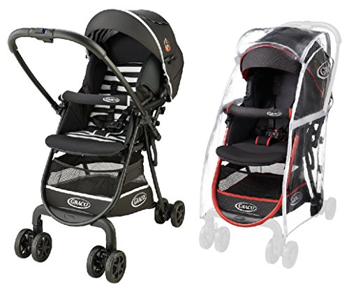 【セット買い】 グレコ ベビーカー シティライトRアップ ボーダーBK + 純正レインカバー