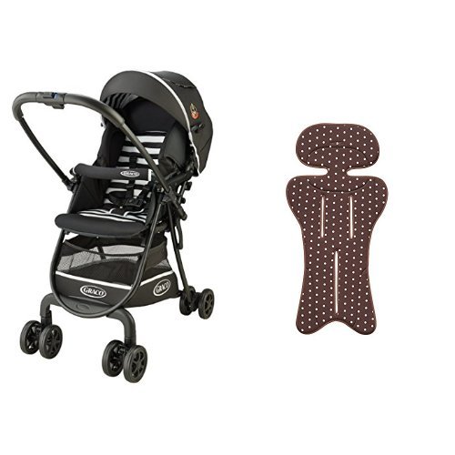 【セット買い】 グレコ ベビーカー シティライトRアップ ボーダーブラック + さらっとマット ビタードットBR 純正リバーシブルタイプ