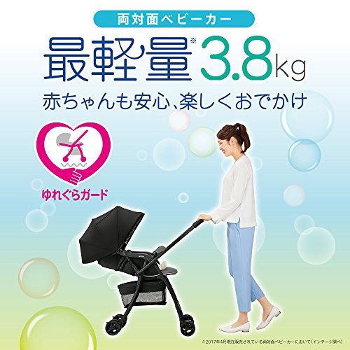 ●両対面ベビーカーで軽量の3.8kg!こんなに軽いから、階段や電車・バスでのおでかけもスムーズに。●軽量でも“ゆれぐらガード”で赤ちゃんがうけるデコボコ道での振動を軽減し、ママはベビーカーが押しやすく、ちょっとした段差でも力がかけやすい。赤ちゃんとママにとって安心なおでかけを実現しました。●さらに、風を通し、路面の熱を反射させカットする「Wサーモメディカルシステム」、熱とホコリから遠ざける「ハイシート」、ビッグバスケットやワンタッチ開閉機能など、その他の機能も充実。●使用期間:生後1カ月~36カ月(体重15kg以下)●サイズ開:W455×D815~985×H1000~1035mm、閉:W455×D305×H962mm重さ3.8kg●リクライニング角度121°~157°●製品安全協会A型SG合格品
