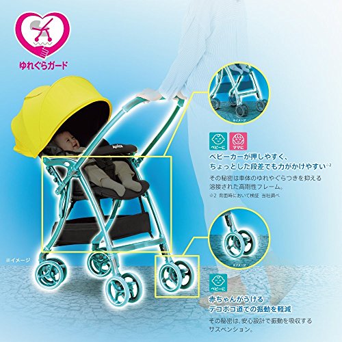 ⇒振動吸収するサスペンション搭載で、赤ちゃんがうける、デコボコ道での振動を軽減。