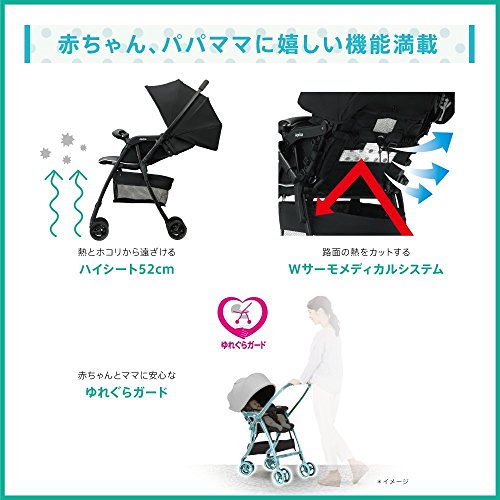 ・ゆれぐらガードで、赤ちゃんが受けるデコボコ道での振動を軽減し、ママはベビーカーが押しやすい。 ・Wサーモメディカルシステムで、路面の熱をカットする。