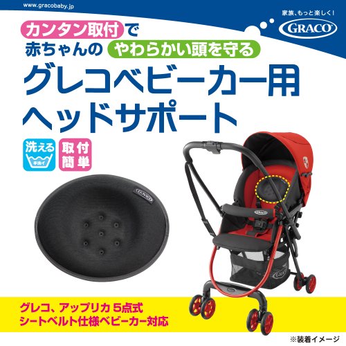 カンタン取付で 赤ちゃんのやわらかい頭を守る ベビーカー用ヘッドサポート グレコ、アップリカ5点シートベルト仕様ベビーカー対応 グラグラな頭と首を安定させ 赤ちゃんの乗り心地を向上! お手入れカンタン ●洗えるから、 汗っかきな赤ちゃんでいつでも快適! 専用設計だからぴったりフィット!