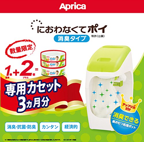 アップリカ 紙おむつ処理ポット におわなくてポイ 消臭タイプ バリューパックGN 【本体 + 専用カセット約3ヵ月分】 09120 「消臭」・「抗菌」・「防臭」可