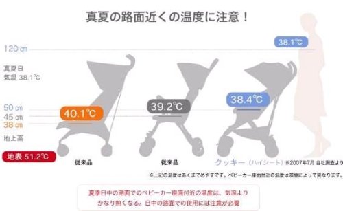 特徴2 路面からの熱から守る 「NICE AIR」 ハイシート50 路面が高いからママと赤ちゃんの距離が近くて安心。熱やホコリのある路面から離れた高い座面位置で、赤ちゃん快適。