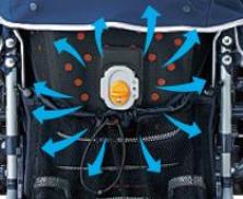 体温調節機能を補う サーモメディカルシステム(ベンチレーション) 赤ちゃんは大人より体温が高く、体温調節機能が未熟。特に熱がこもりやすいシートの通気を調節することで、快適な状態に保てる。