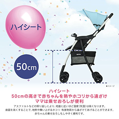・50cmのハイシートで赤ちゃんをホコリや熱から遠ざけ、ママは乗せおろしがしやすく、赤ちゃんもママも軽やかにお出かけができます。