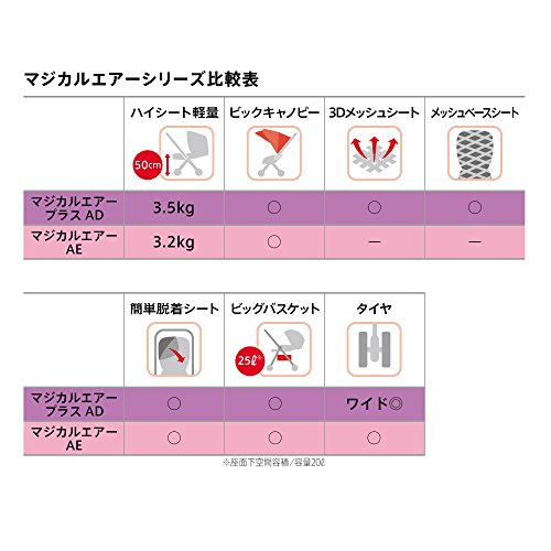 備考:★超軽量3.2kgのコンパクト設計の生後7カ月頃から使用できるB型ベビーカー「マジカルエアー プラス AD」。セカンドベビーカーとして買い替えるのにぴったりです。