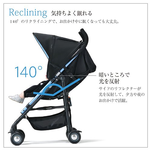 首すわり直後の赤ちゃんでも安心の140°リクライニング。