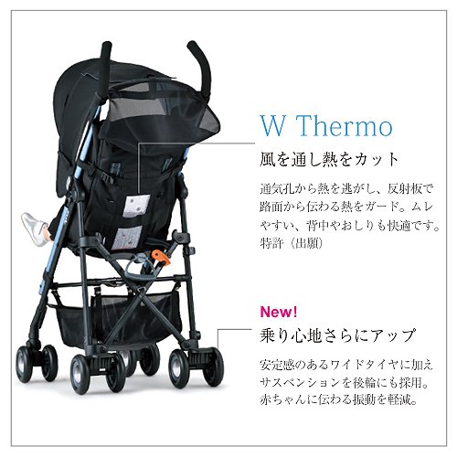 赤ちゃんと地面の距離が遠いから、夏はアスファルトからの照り返しの熱を遠ざけ、冬は冷たい風や、ホコリから遠ざけます。