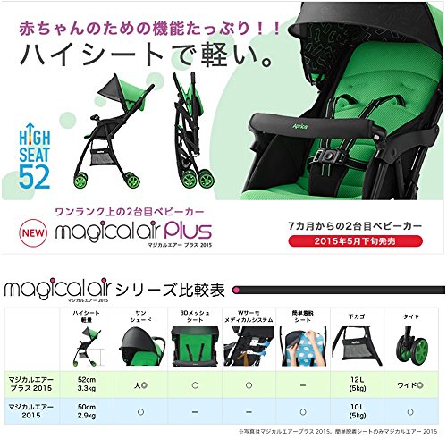 Aprica (アップリカ) 軽量ベビーカー マジカルエアープラス 2015 ピスタチオGN 92558 ハイシート3.3kg 【高剛性リジカルフレーム + ワイドタイヤ】