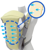 ![]() | 汗っかき赤ちゃんも快適 ベンチレーション 気泡機構の特殊素材に穴を開け、熱をこもりにくくし、赤ちゃんの背中を快適に保つ。 |