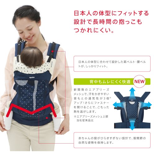 赤ちゃんの背中ムレにくい!エアーブリーズメッシュで通気性3倍アップ!ファスナーをあけることでこもった熱を逃がします。