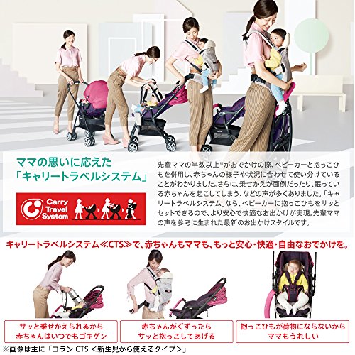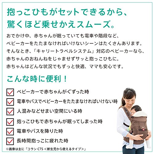 - ベビーカーにセットできる抱っこひもコランCTSが首すわりから使えるとして新登場。カラーは3色。