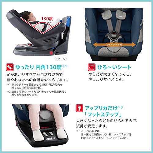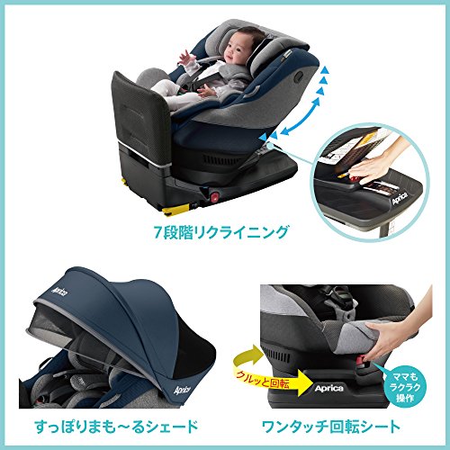 Aprica (アップリカ) 回転式チャイルドシート クルリラ プラス Cururila Plus ムーンライトオーシャン NV 【ISOFIX固定+フットステップ付き】 ※安全基準R129適合 2041789