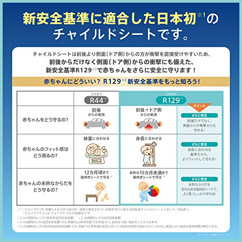 - 安全基準「R129」は、従来の安全基準「ECER44/04」から、ISOFIXをはじめとする安全対策を推進し、さらに近年の安全テストや事故調査の結果を基に、さらなる安全性の向上を図る新しい規格を盛り込んだ、次世代の安全基準です。