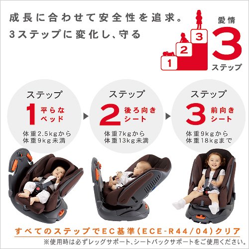 ※赤ちゃんの成長に、やさしくフィット。ずっと安心の愛情3ステップ設計!すべてのステップでEC基準 (ECE-R44/04) クリア