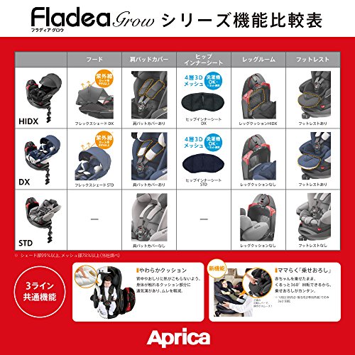 - ※フレックスシェードDX・・・4歳頃まで長く使えます。取り外し可。(紫外線カット率シェード部99%以上、メッシュ部78%以上。アップリカ調べ)